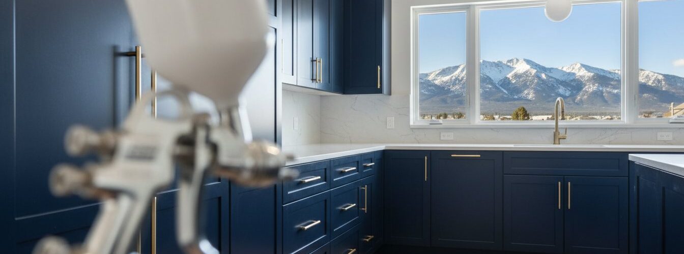 The “Altitude Factor” is another technical hurdle that requires local knowledge. At 5,280 feet, the air is thinner, which directly impacts how spray equipment atomizes paint. Standard factory settings on sprayers often produce a “spit” or an uneven pattern at high elevations. We calibrate our HVLP and airless systems specifically for Denver’s atmospheric pressure. By adjusting the PSI and utilizing precision spray tips, we ensure the coating breaks down into a fine mist. This level of technical adjustment is what separates a “painted” cabinet from a “factory-refinished” cabinet. It ensures that every inch of your kitchen receives a consistent, durable layer of protection.